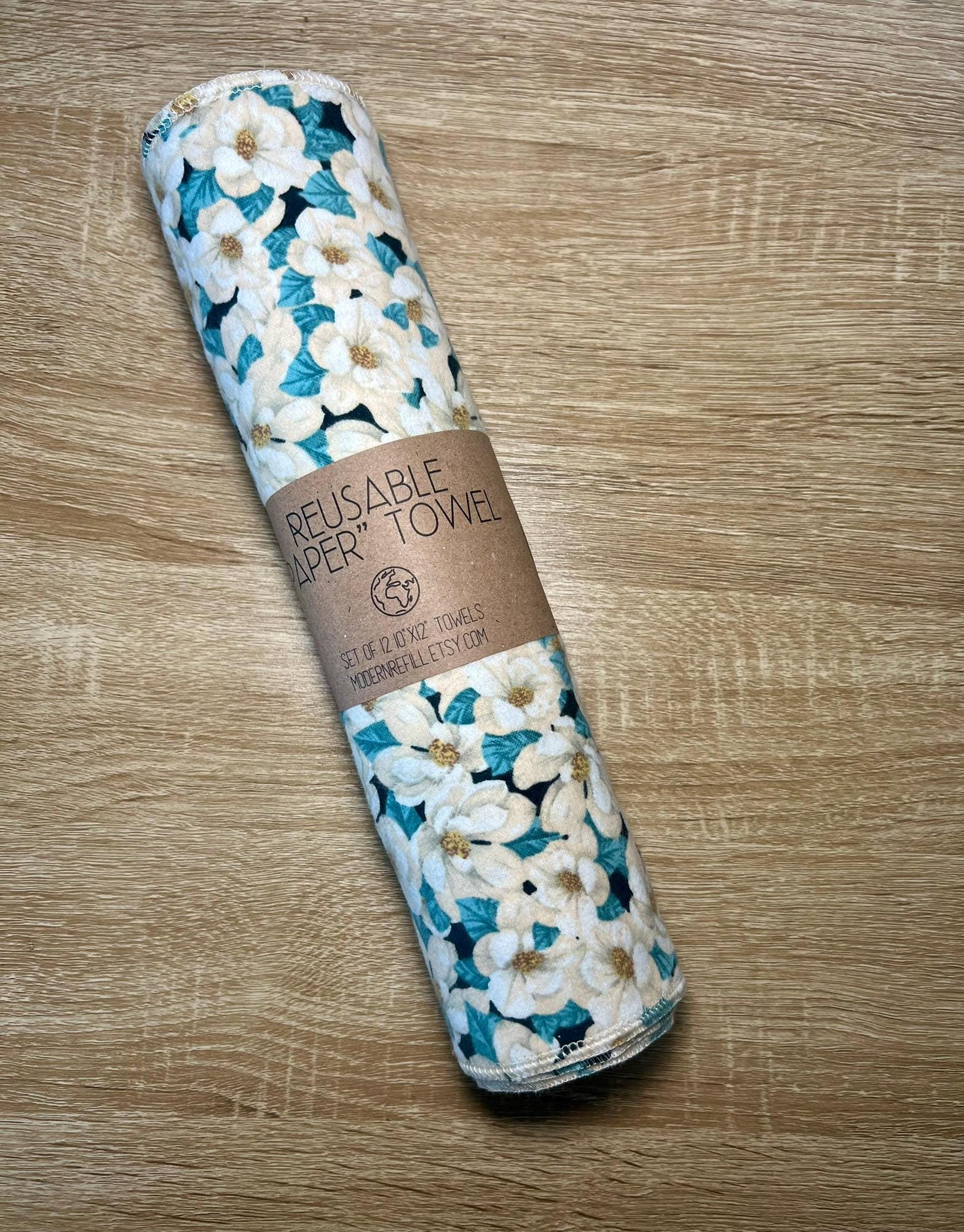 White Floral Reusable Paper Towels | Sustainable Kitchen Towels